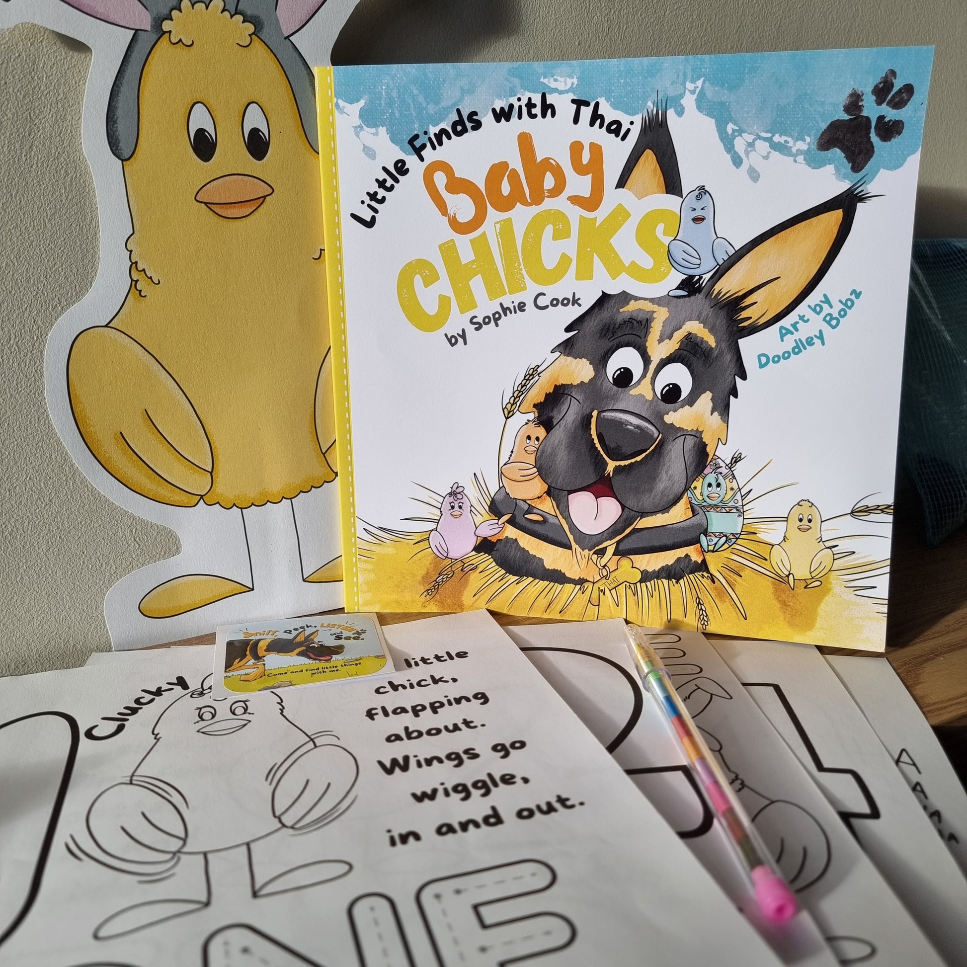Celebrate in style with a signed copy of Little Finds with Thai: Baby Chicks, plus five fun colouring pages straight from the book, a multicoloured crayon ready for rainbow masterpieces, and a cheerful Thai sticker to stick wherever adventures are planned. Itβs a storytime bundle bursting with creativity, perfect for little hands who love to colour, explore and peek for tiny finds.